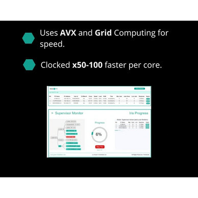 Iris scales up easily on modest hardware, making deployment more cost effective whether in-house or on the cloud. With the GPU addition, Iris now clocks up to thousands of times faster.